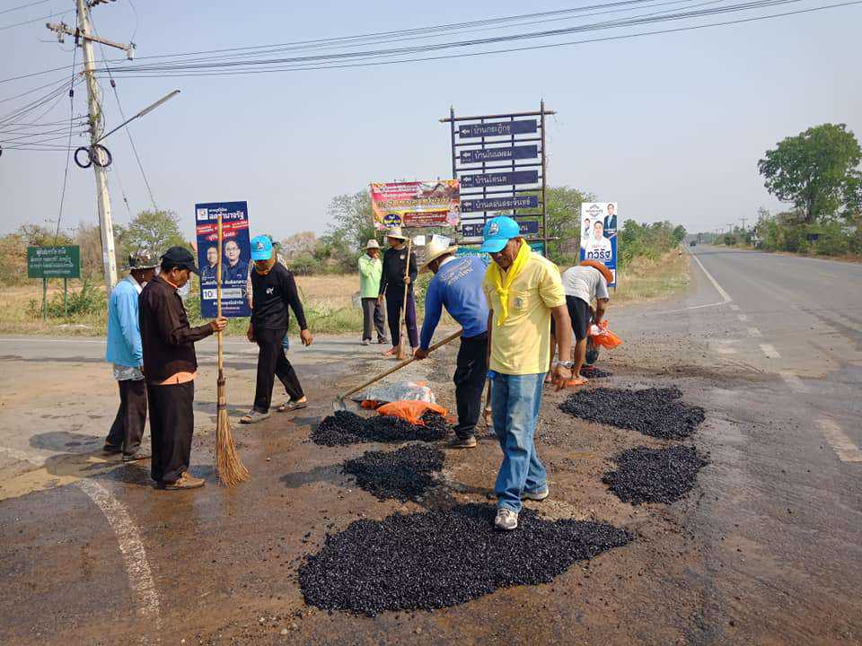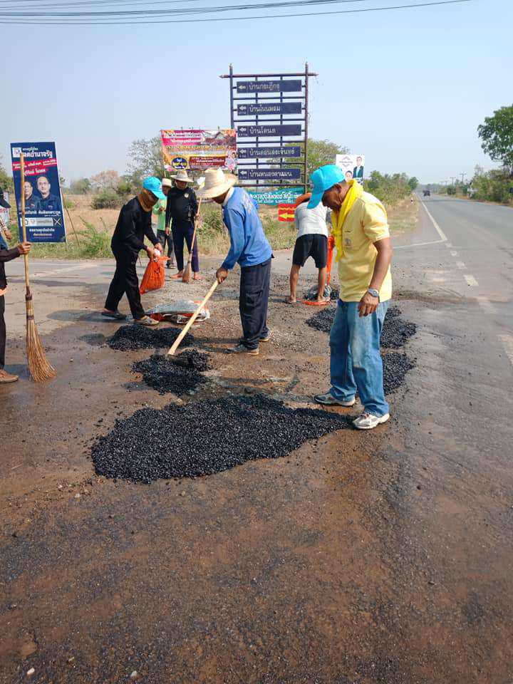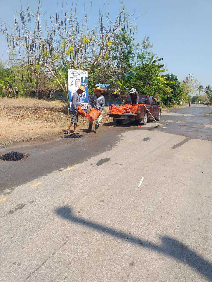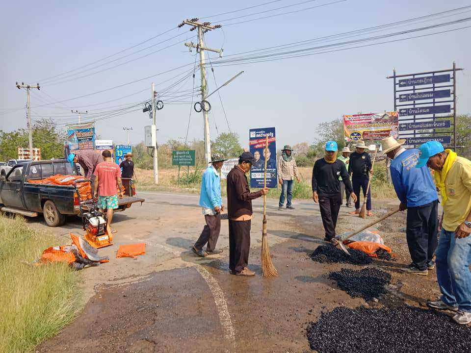 นายก อบต.ถนนโพธิ์ นายสมบูรณ์ พิพัฒน์ คณะผู้บริหารและประธานสภาฯ นายสายชล จงกลกลาง นำ กำนัน ผญบ. สมาชิกสภา ประชาชนและจิตอาสา ออกซ่อมแซมและปรับปรุงถนนที่เป็นหลุมเป็นบ่อ ภายในเขตตำบลถนนโพธิ์ S:1