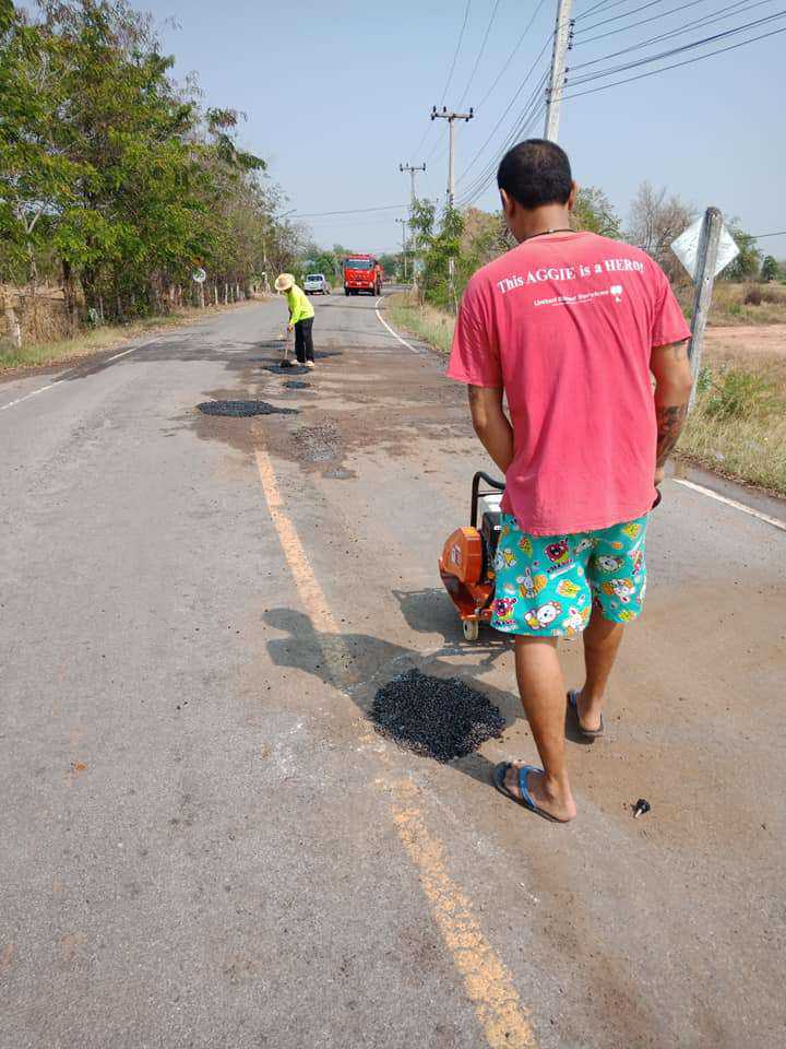 นายก อบต.ถนนโพธิ์ นำประชาชนและจิตอาสา ซ่อมแซม ปรับปรุงถนนภายในเขตตำบลถนนโพธิ์