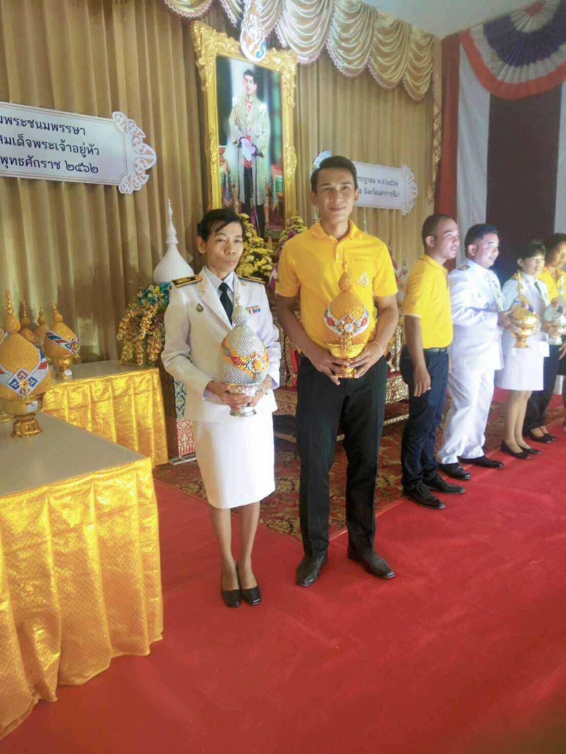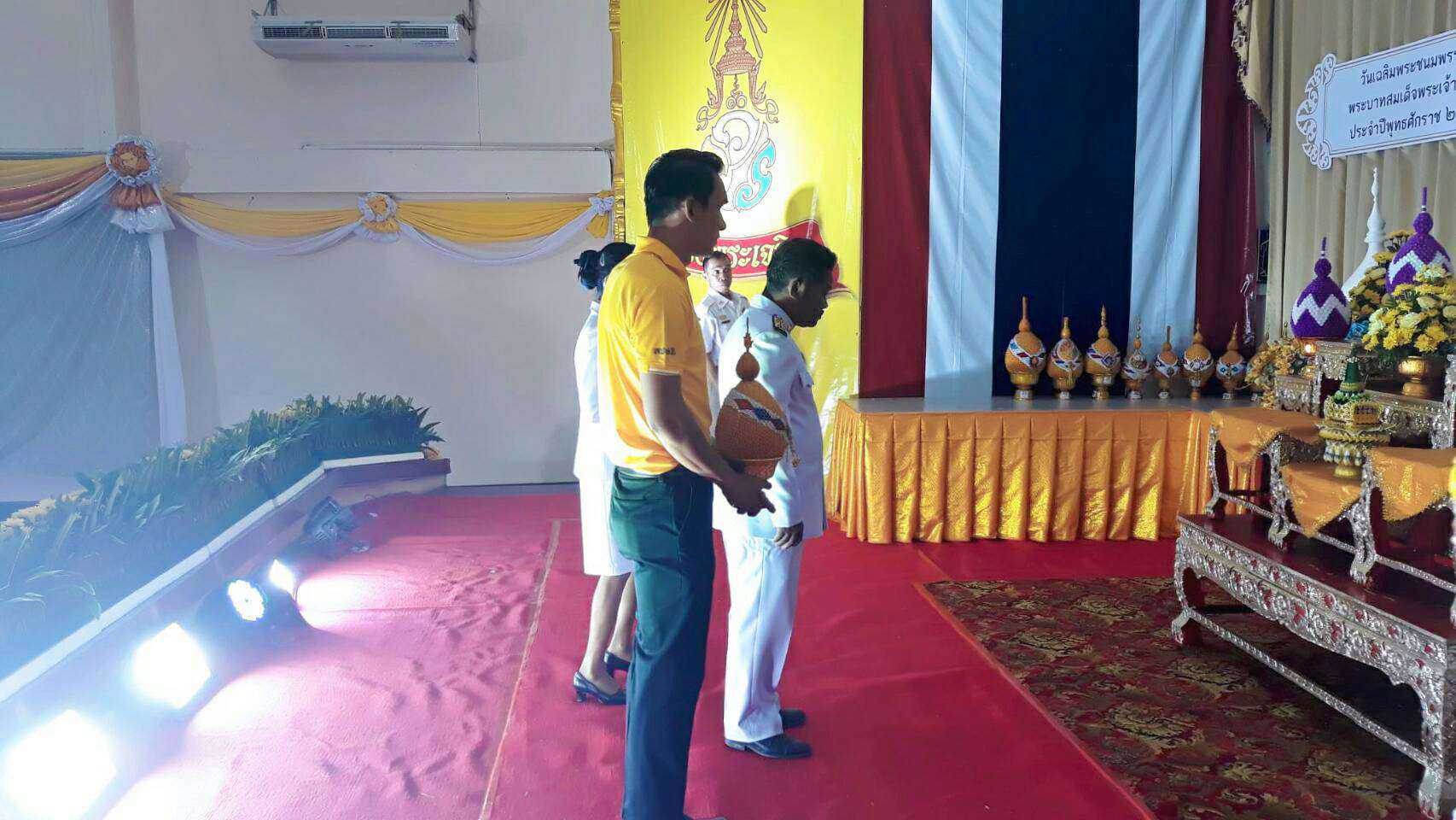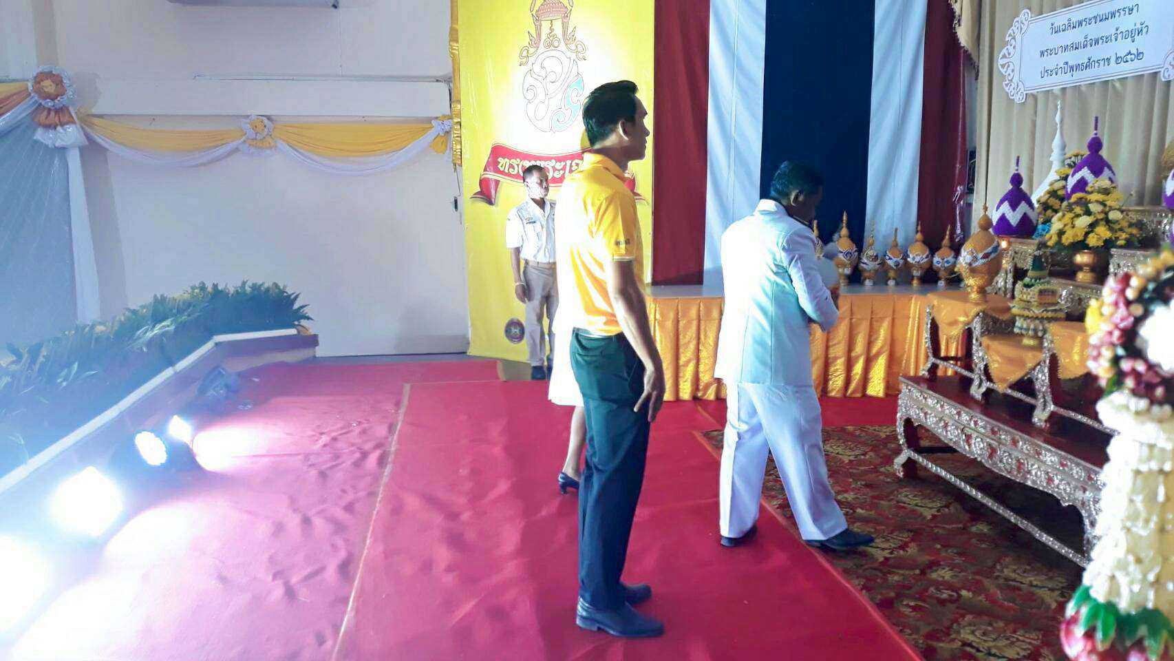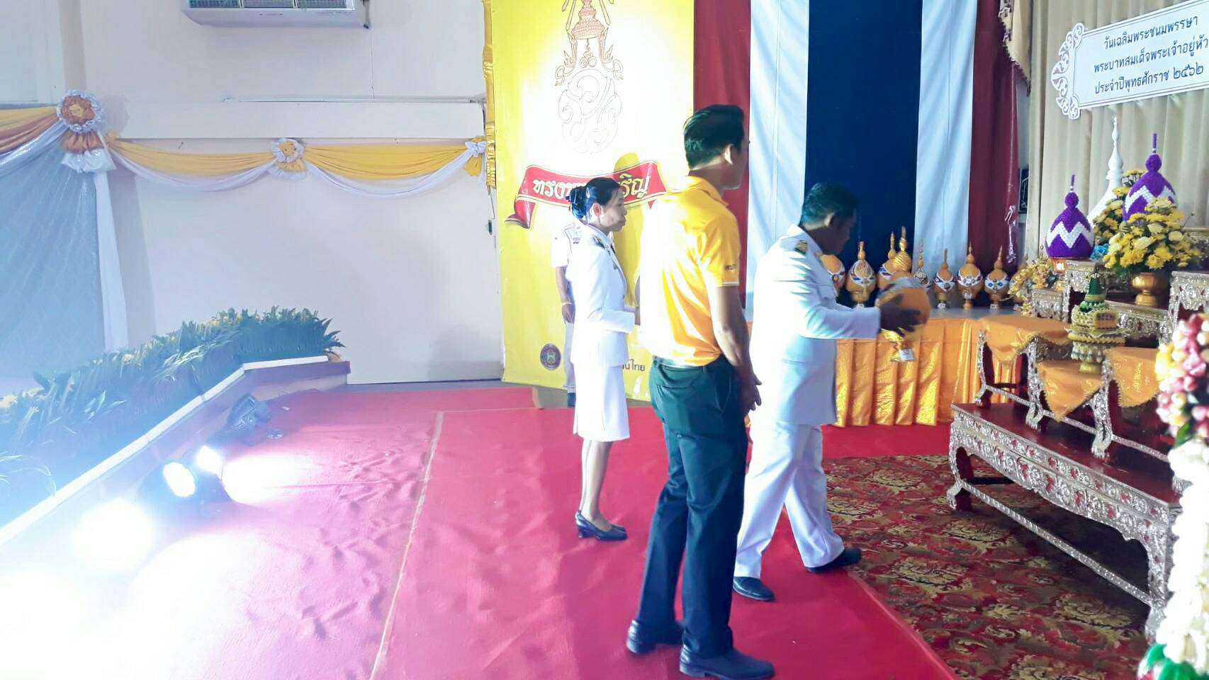 นายกองค์การบริหารส่วนตำบลถนนโพธิ์ นายสมบูรณ์ พิพัฒน์ มอบหมายให้ นายสายชล จงกลกลาง ประธานสภาฯ ร่วมกิจกรรมวางพานพุ่มและจุดเทียนถวายพระพรชัย สมเด็จพระเจ้าอยู่หัว รัชกาลที่ 10 เนื่องในวันเฉลิมพระชนมพรรษา วันที่ 28 กรกฎาคม 2562 ณ หอประชุมลำเชียงไกร อ.โนนไทย จ.นครราชสีมา S:1