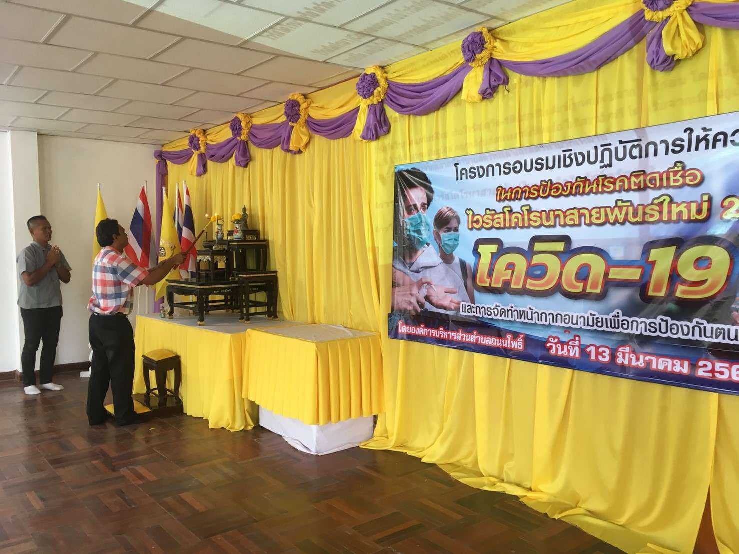 องค์การบริหารส่วนตำบลถนนโพธิ์ ดำเนินงานโครงการอบรมเชิงปฏิบัติการให้ความรู้ในการป้องกันโรคติดเชื้อไวรัสโคโรน่า 2019 (COVID-19) และการจัดทำหน้ากากอนามัยเพื่อการป้องกันตนเอง (วันที่ 13 มีนาคม 2563) ณ หอประชุมองค์การบริหารส่วนตำบลถนนโพธิ์ S:1