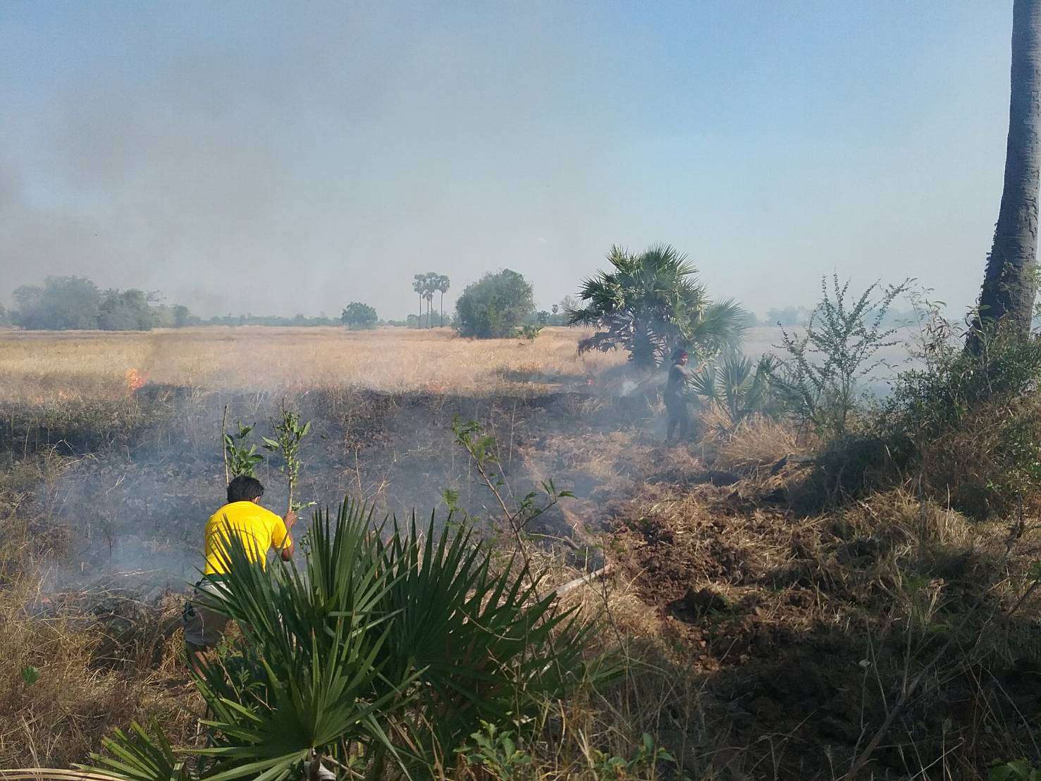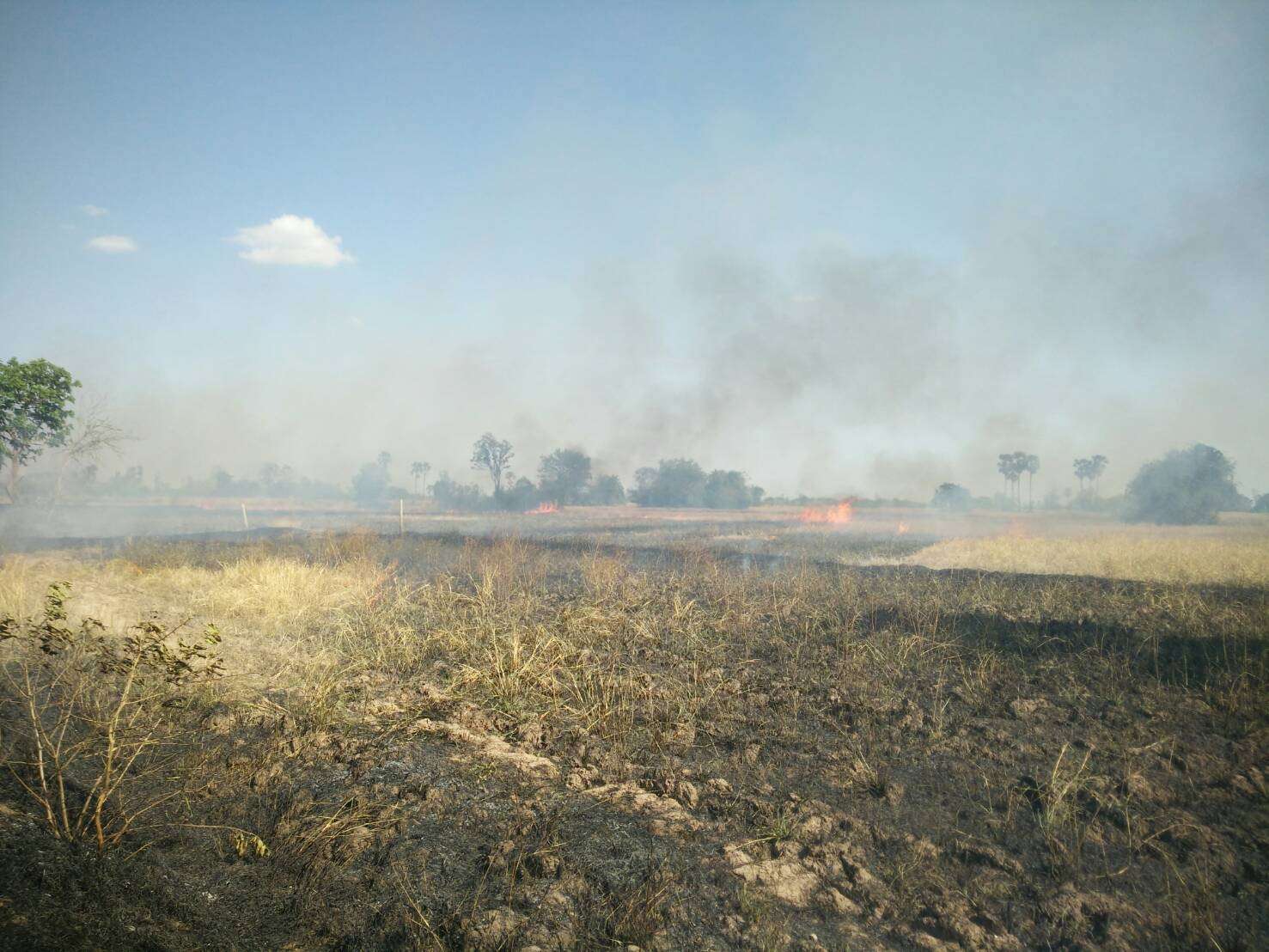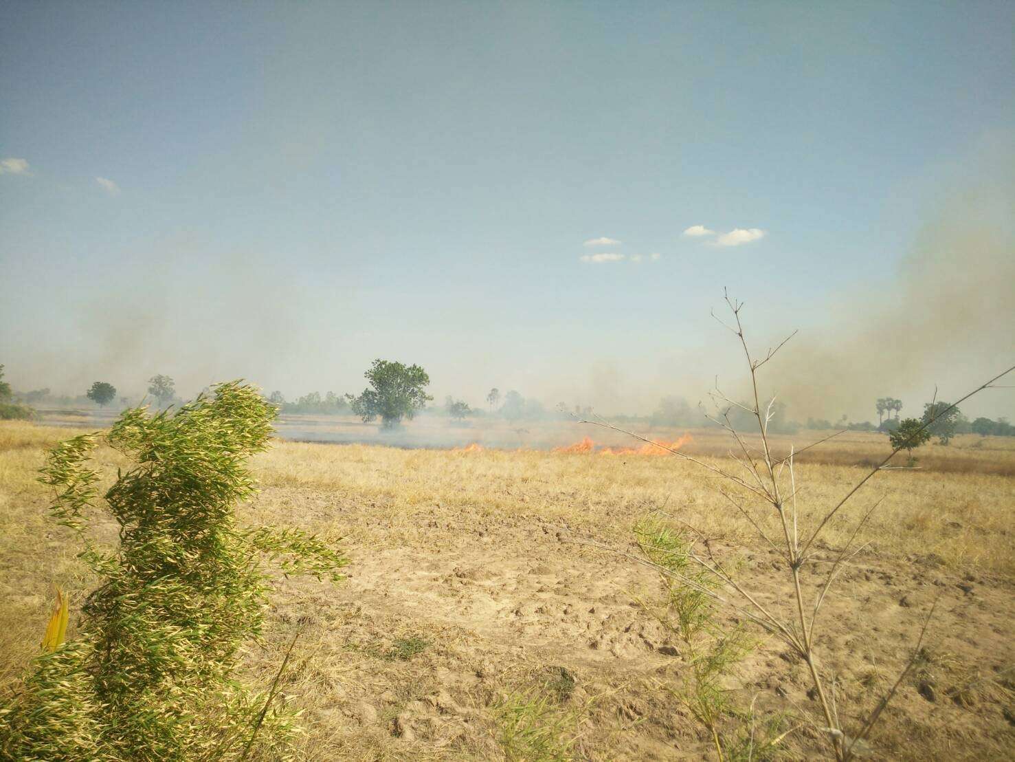 เกิดเหตุไฟไหม้ทุ่งนาบริเวณท้ายหมู่บ้าน หมู่ที่ 4 ลามมาจนถึงถนนใหญ่และทุ่งนาหมู่บ้าน หมู่ที่ 1