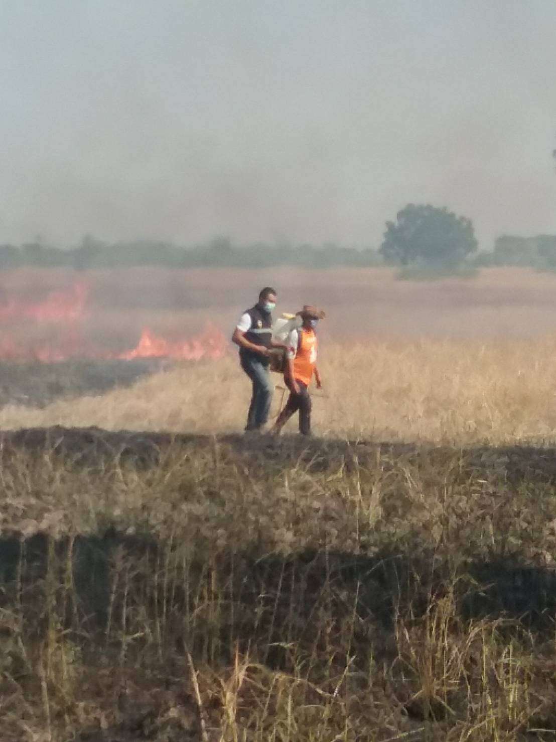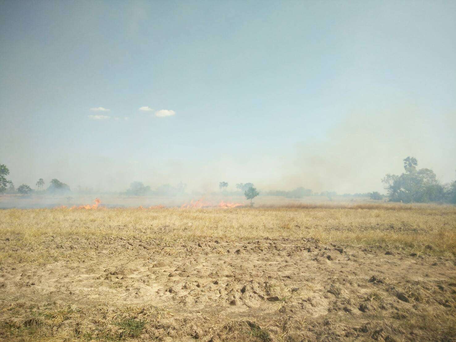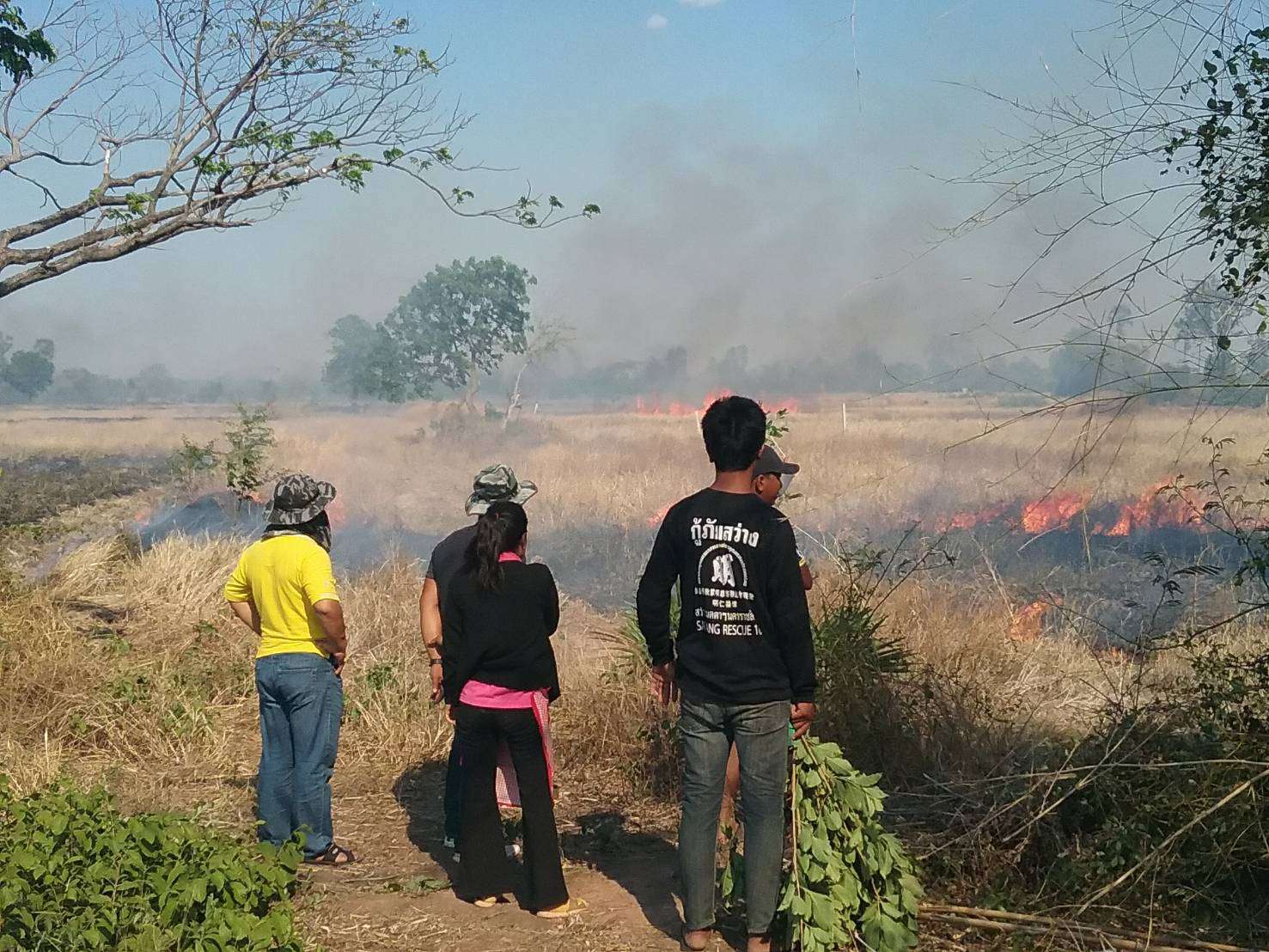 เกิดเหตุไฟไหม้ทุ่งนาบริเวณท้ายหมู่บ้าน หมู่ที่ 4 ลามมาจนถึงถนนใหญ่และทุ่งนาหมู่บ้าน หมู่ที่ 1