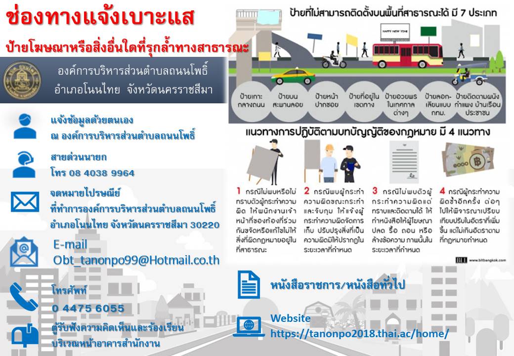 ประชาสัมพันธ์การแจ้งเบาะแสป้ายโฆษณาหรือสิ่งอื่นใดที่รุกล้ำทางสาธารณะ