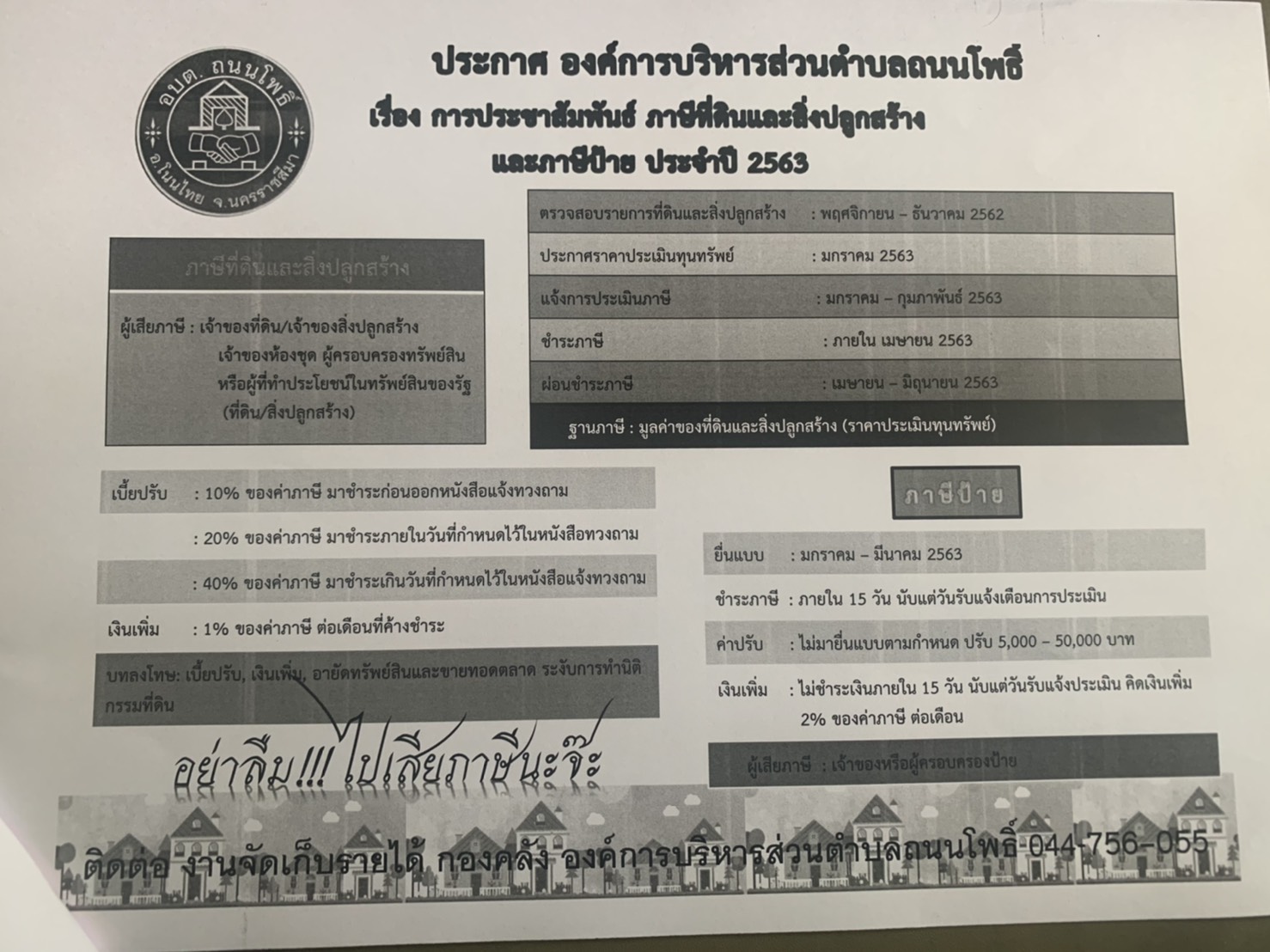 ประชาสัมพันธ์ภาษีที่ดินและสิ่งปลูกสร้าง และภาษีป้าย ประจำปี 2563