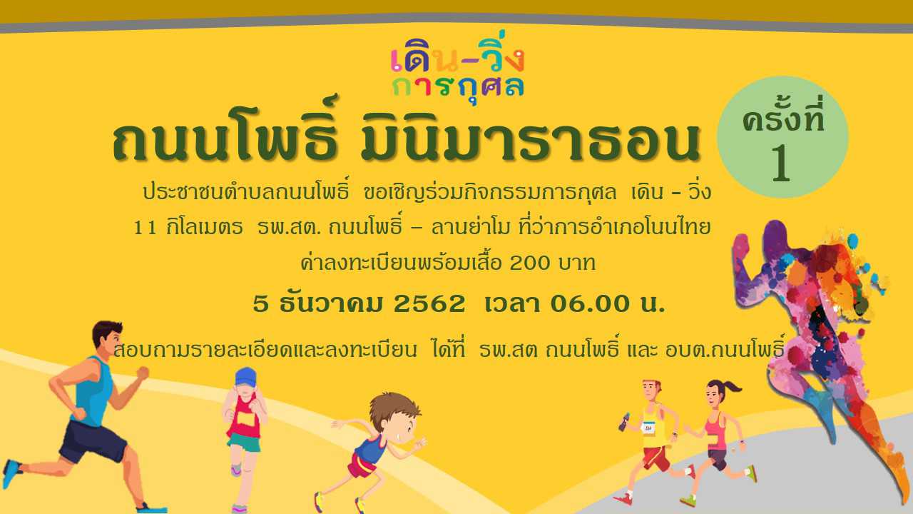 เครือข่ายภาครัฐและประชาชนตำบลถนนโพธิ์ ขอเชิญร่วม "เดิน-วิ่งการกุศล ถนนโพธิ์ มินิมาราธอน ครั้งที่ 1"