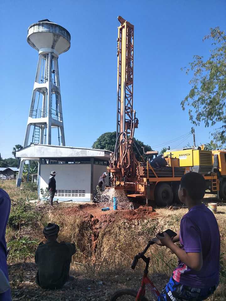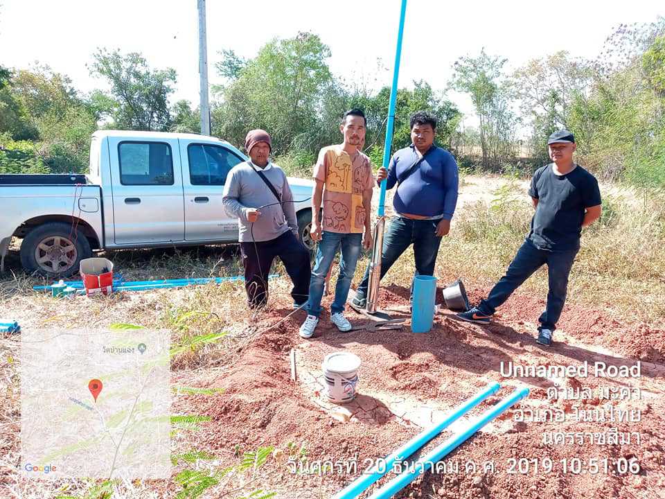 เจาะบ่อน้ำบาดาลเพื่อสูบขึ้นแจกจ่ายให้กับประชาชนในเขตตำบลถนนโพธิ์