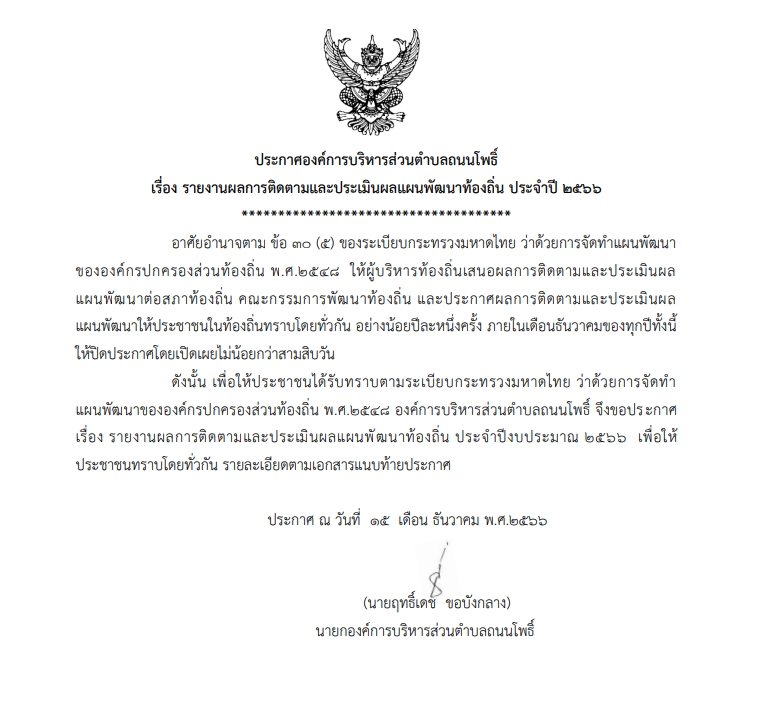 รายงานผลการติดตามและประเมินผลแผนพัฒนาท้องถิ่น ประจำปี 2566
