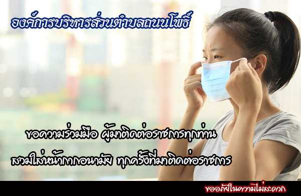 ขอความร่วมมือผู้มาติดต่อราชการ สวมใส่หน้ากากอนามัยทุกครั้งที่มาติดต่อราชการ