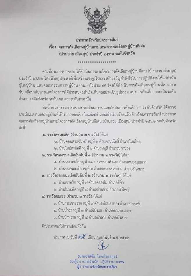ขอแสดงความยินดีกับหมู่บ้านดอนสระจันทร์ หมู่ที่ 6 ตำบลถนนโพธิ์ อำเภอโนนไทย จังหวัดนครราชสีมา