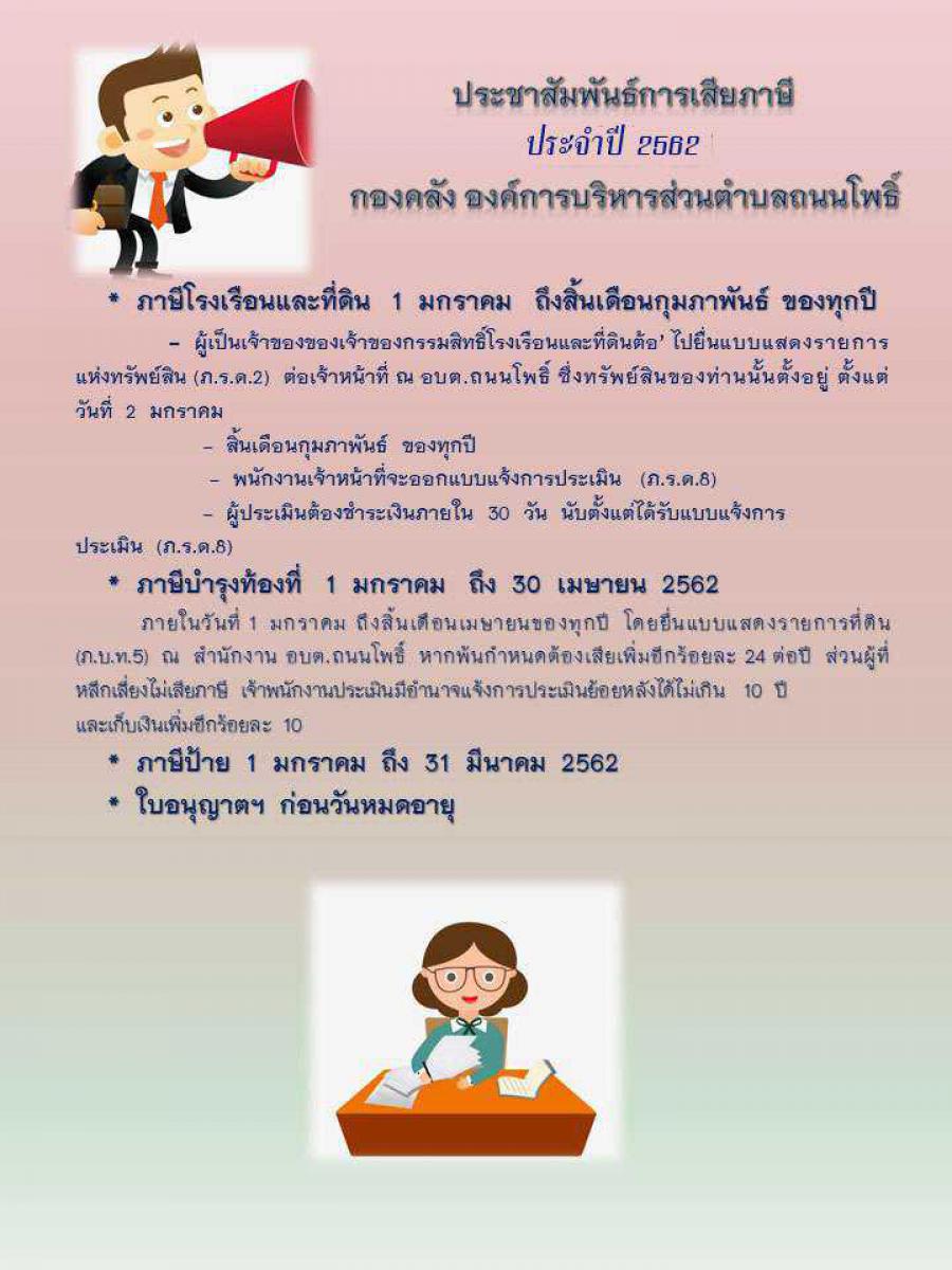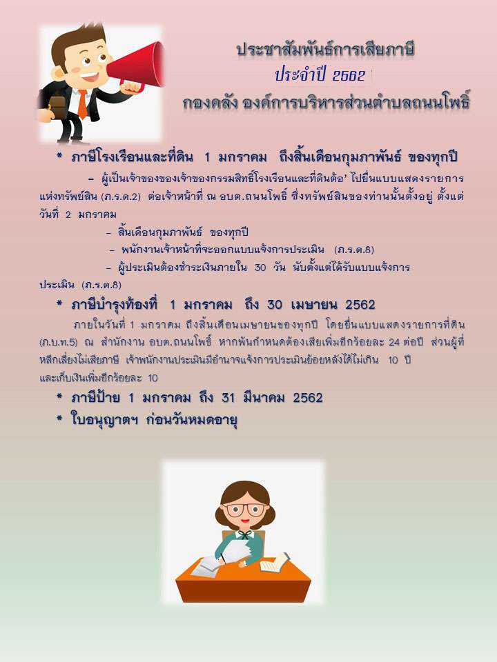 ประชาสัมพันธ์การเสียภาษีบำรุงท้องที่ ประจำปี 2562