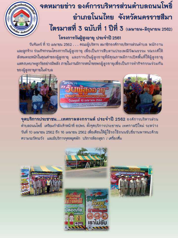จดหมายข่าว อบต.ถนนโพธิ์ ไตรมาส 3 ปีงบประมาณ 2562